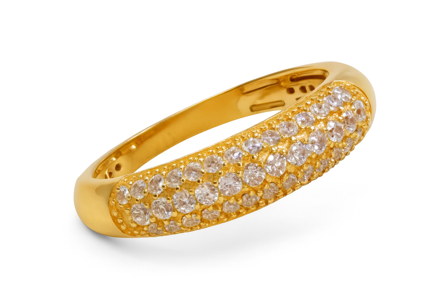 Anel aparador em ouro 18k com 3 fileiras de zircônias.