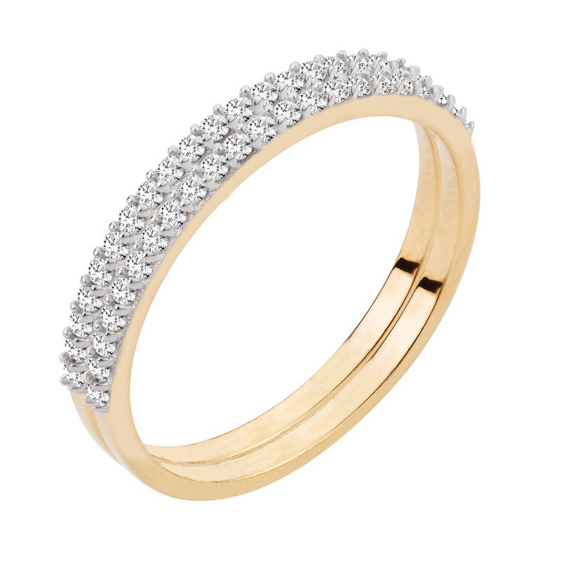 Anel aparador em ouro 18k com duas fileiras de zircônias.