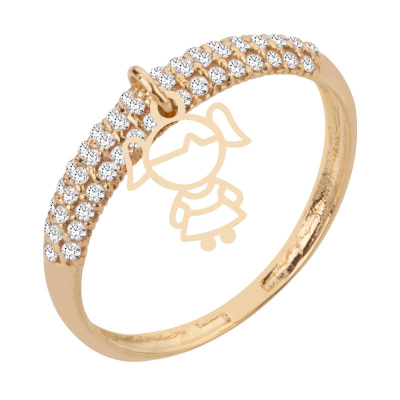 Anel aparador com menina em ouro 18k e 3 fileiras de zircônias.