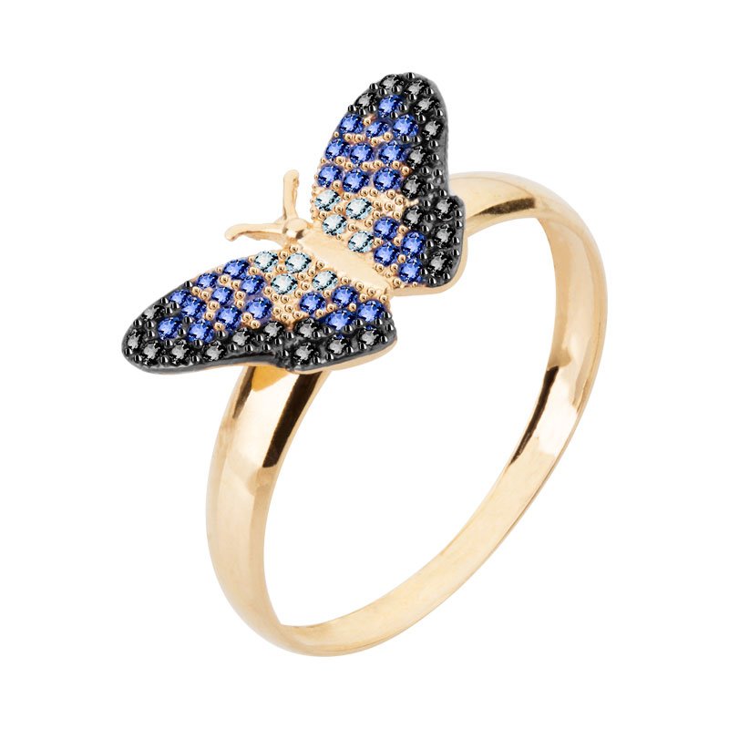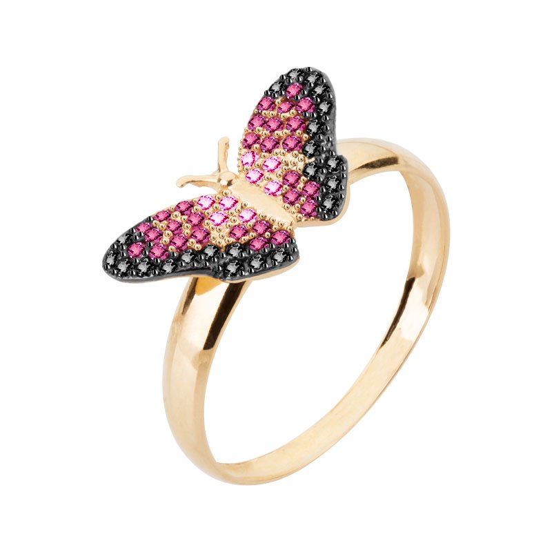 Anel borboleta G em ouro 18k com zircônias.