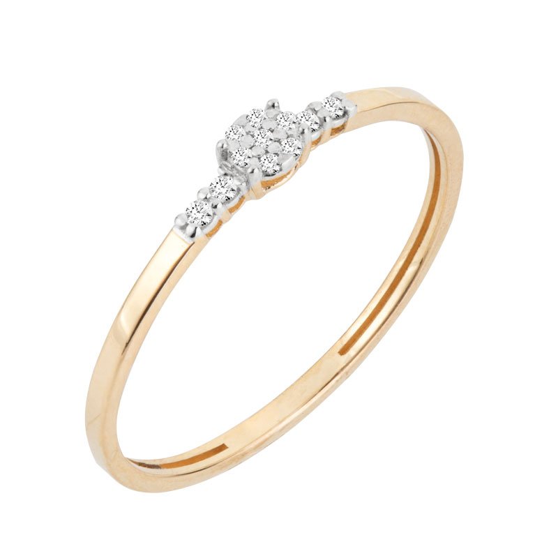 Anel chuveiro com pedras laterais em ouro 18k com zircônias.
