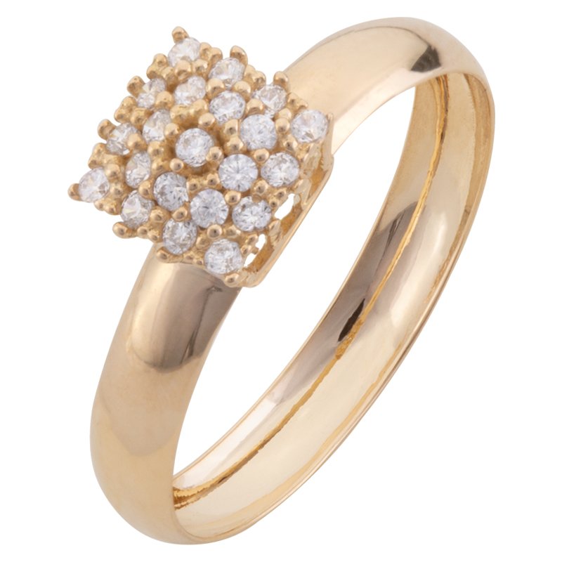 Anel chuveiro quadrado em ouro 18k com zircônias.