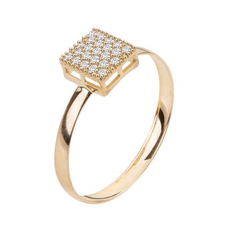 Anel chuveiro quadrado em ouro 18k com zircônias.