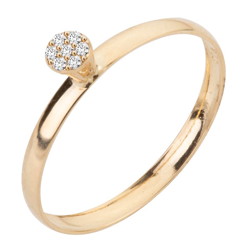 Anel chuveiro redondo em ouro 18k com zircônias.