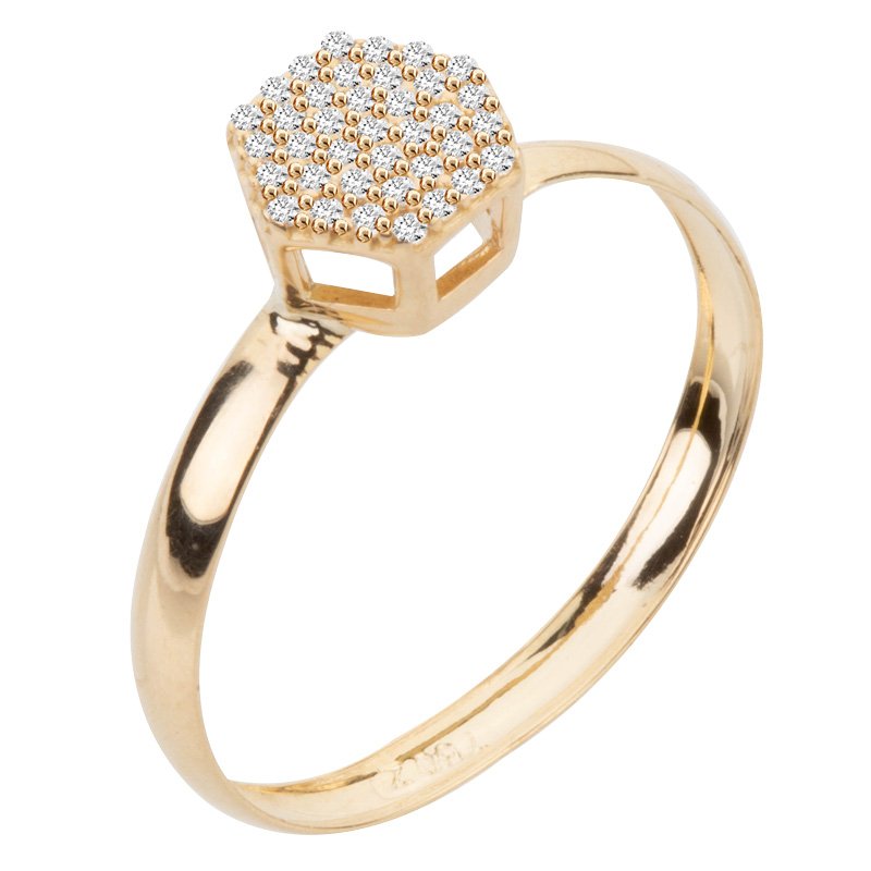 Anel chuveiro sextavado em ouro 18k com zircônias.