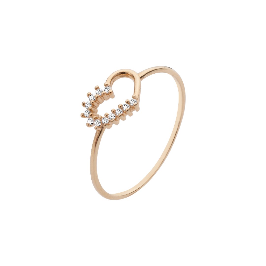 Anel coração vazado em ouro 18k com zircônias.