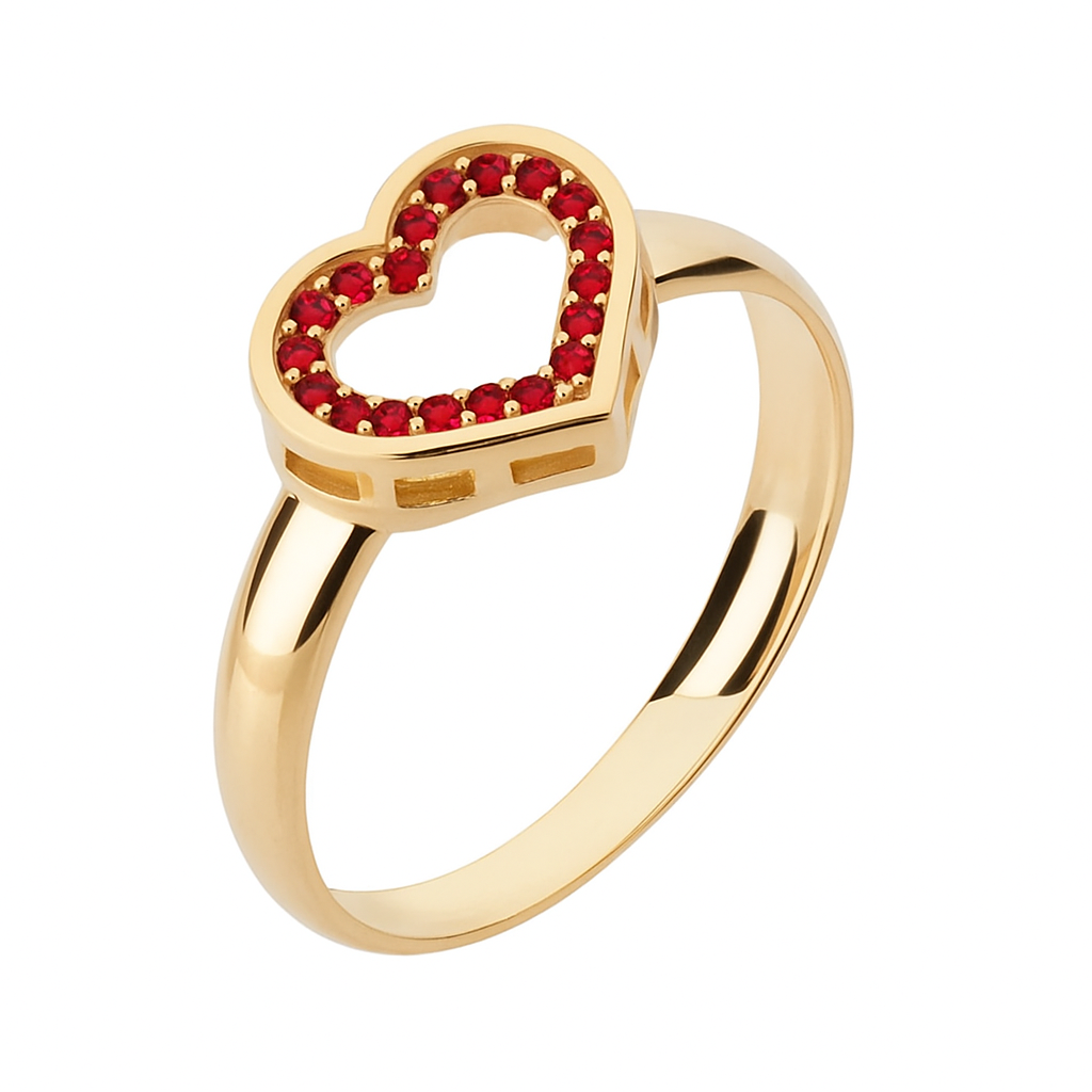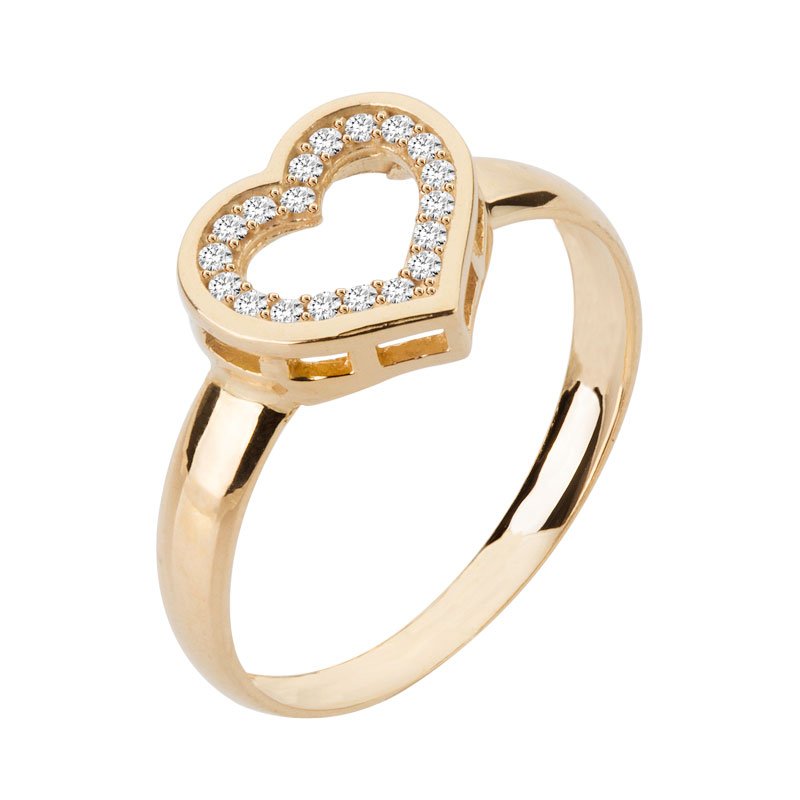Anel coração galeria vazado em ouro 18k com zircônias.