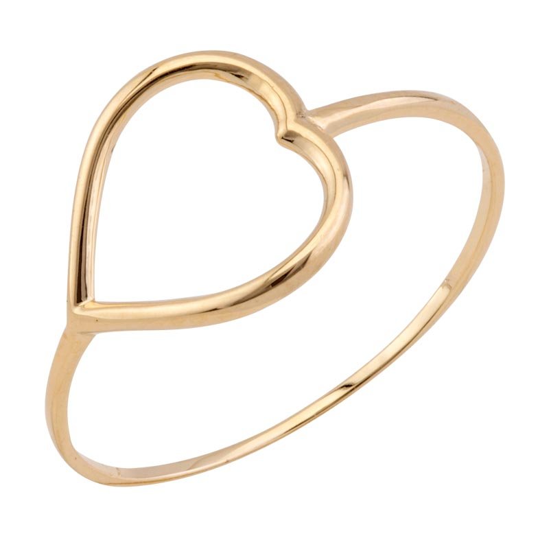 Anel coração horizontal vazado em ouro 18k.