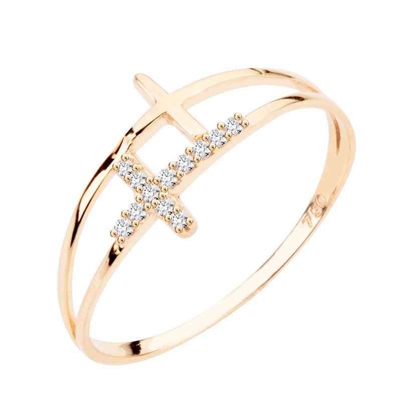 Anel duas cruzes em ouro 18k com zircônias.