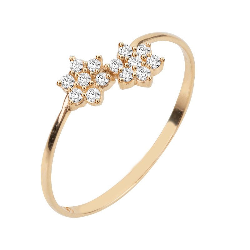 Anel duas flores em ouro 18k com zircônias.