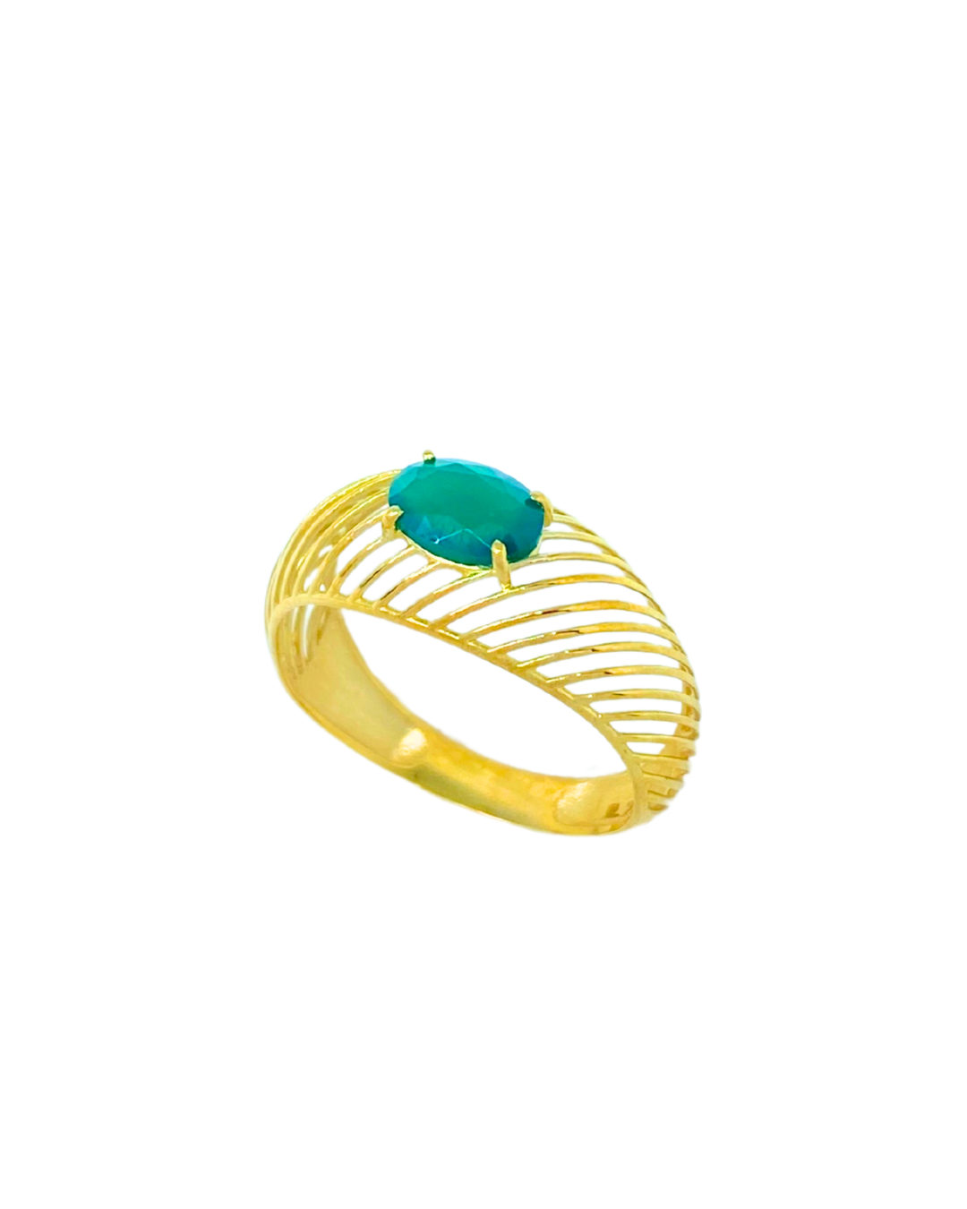 Anel fios em ouro 18k com pedra natural oval Crisopázio.