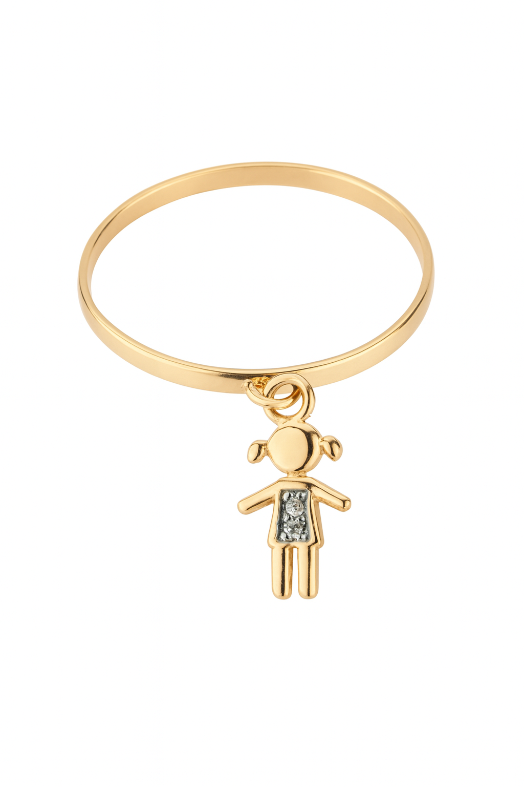 Anel menina pendurada em ouro 18k com 2 brilhantes.