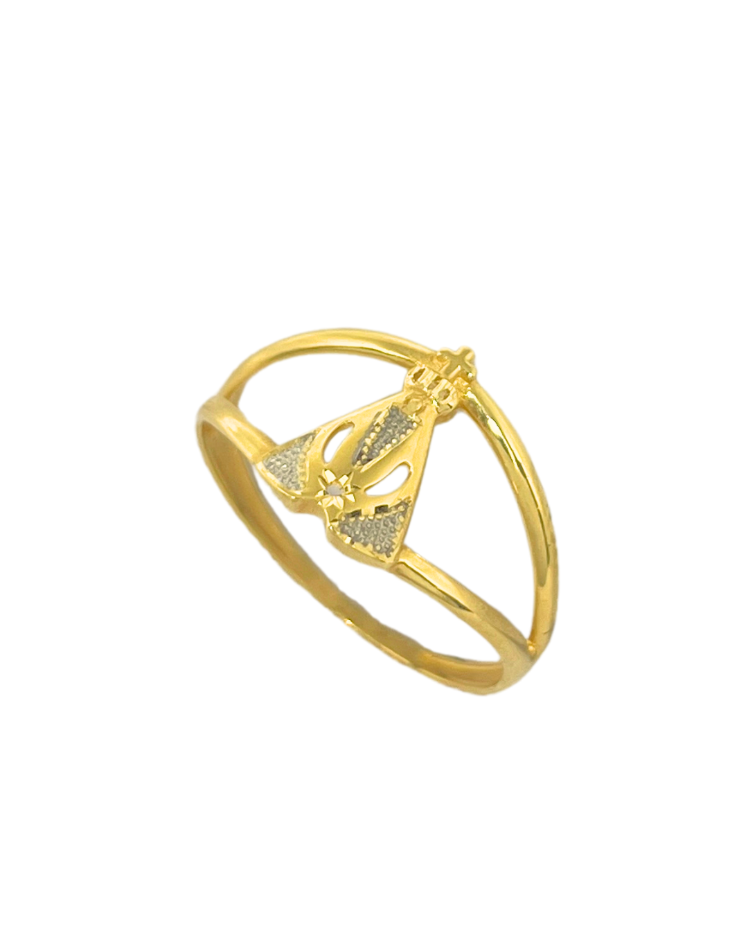 Anel Nossa Senhora Aparecida em ouro amarelo 18k e ouro branco.