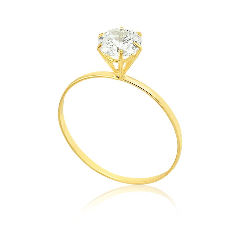 Anel solitário em ouro 18k com zircônia de 6mm.