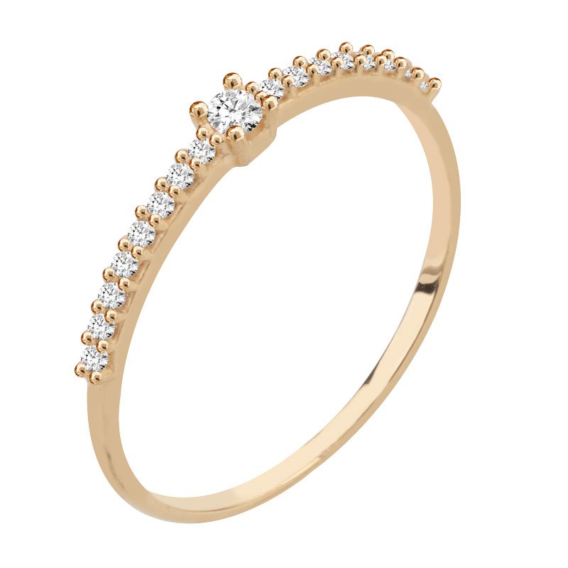 Anel solitário com 16 pedras laterais em ouro 10k com zircônias.
