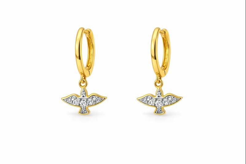 Argola redonda com Espírito Santo em ouro 18k com zircônias.