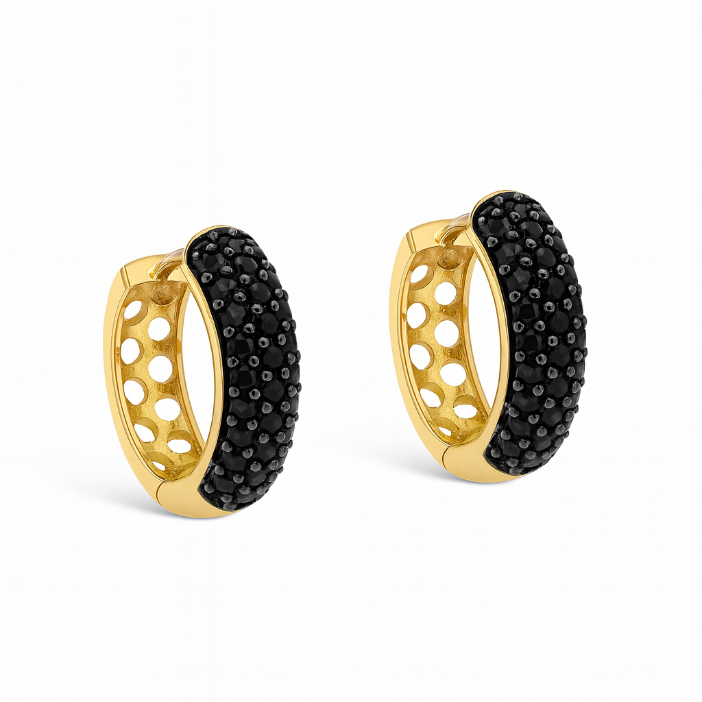 Argola em ouro 18k com 3 fileiras de zircônias.