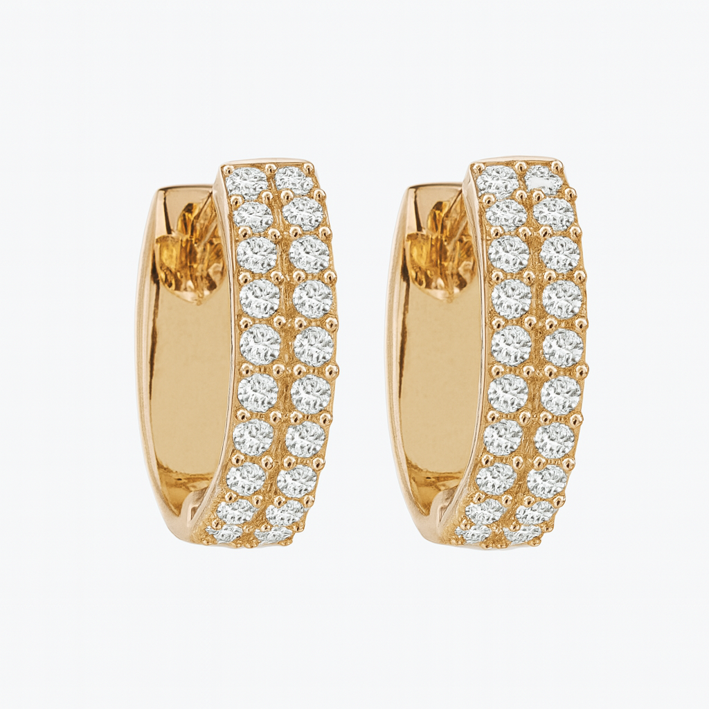 Argola redonda em ouro 18k com 2 fileiras de zircônias.