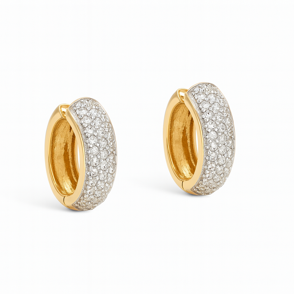 Argola redonda em ouro 18k com 3 fileiras de zircônias.