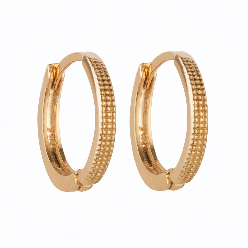 Argola Redonda Diamantada Fio Quadrado P em ouro 18k.