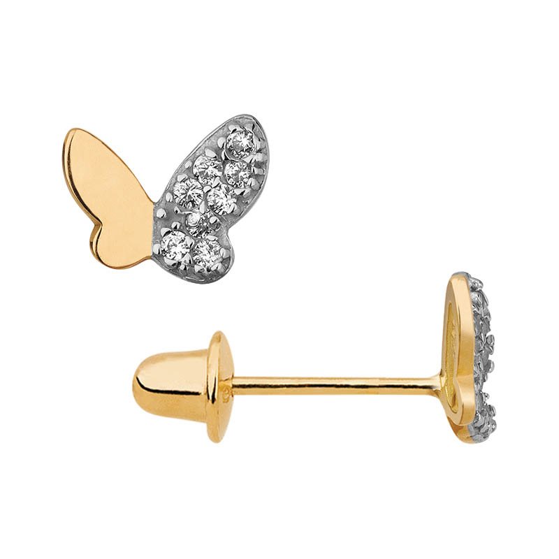 Brinco borboleta em ouro 18k com zircônias.