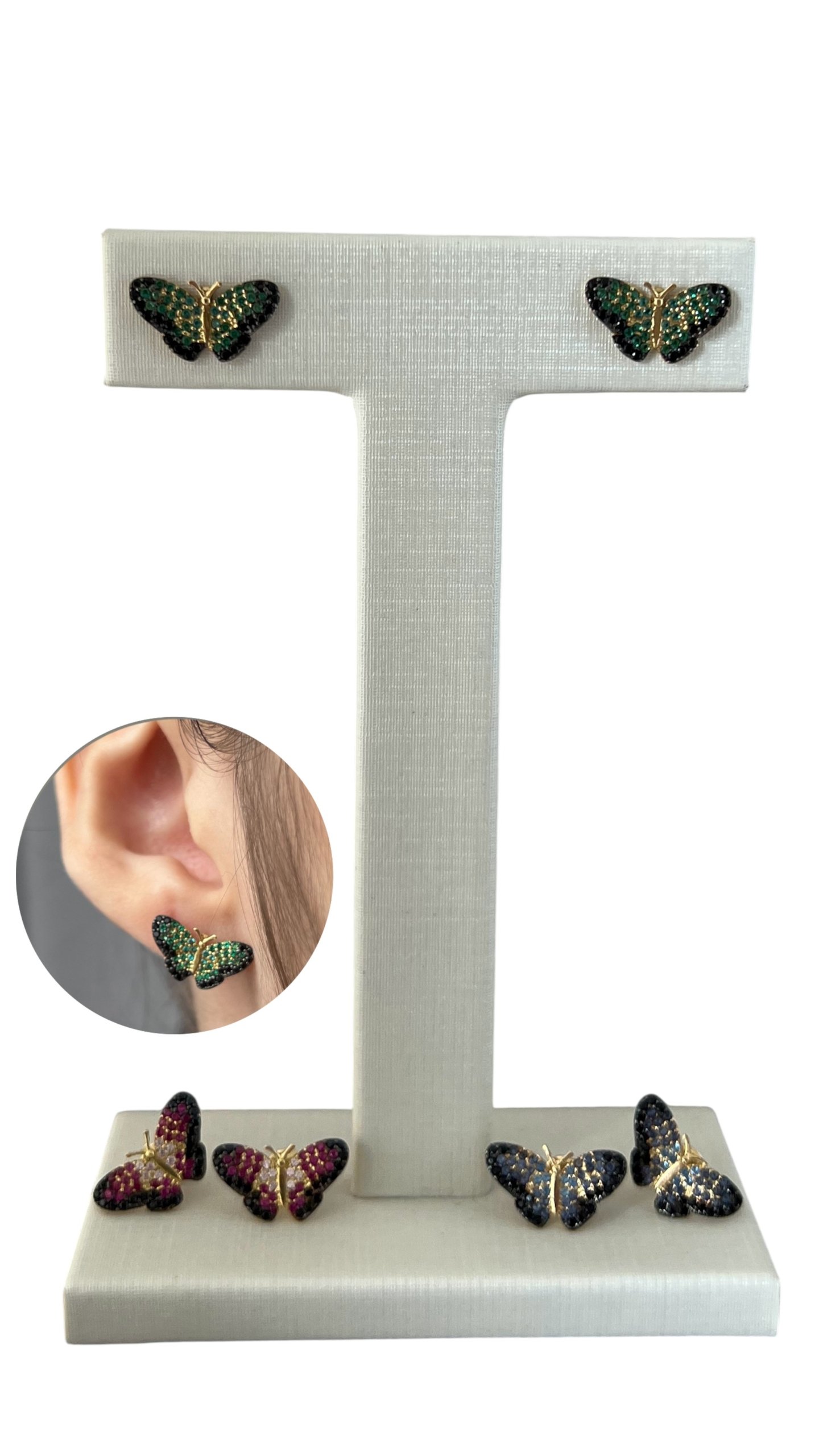 Brinco borboleta G em ouro 18k com zircônias.