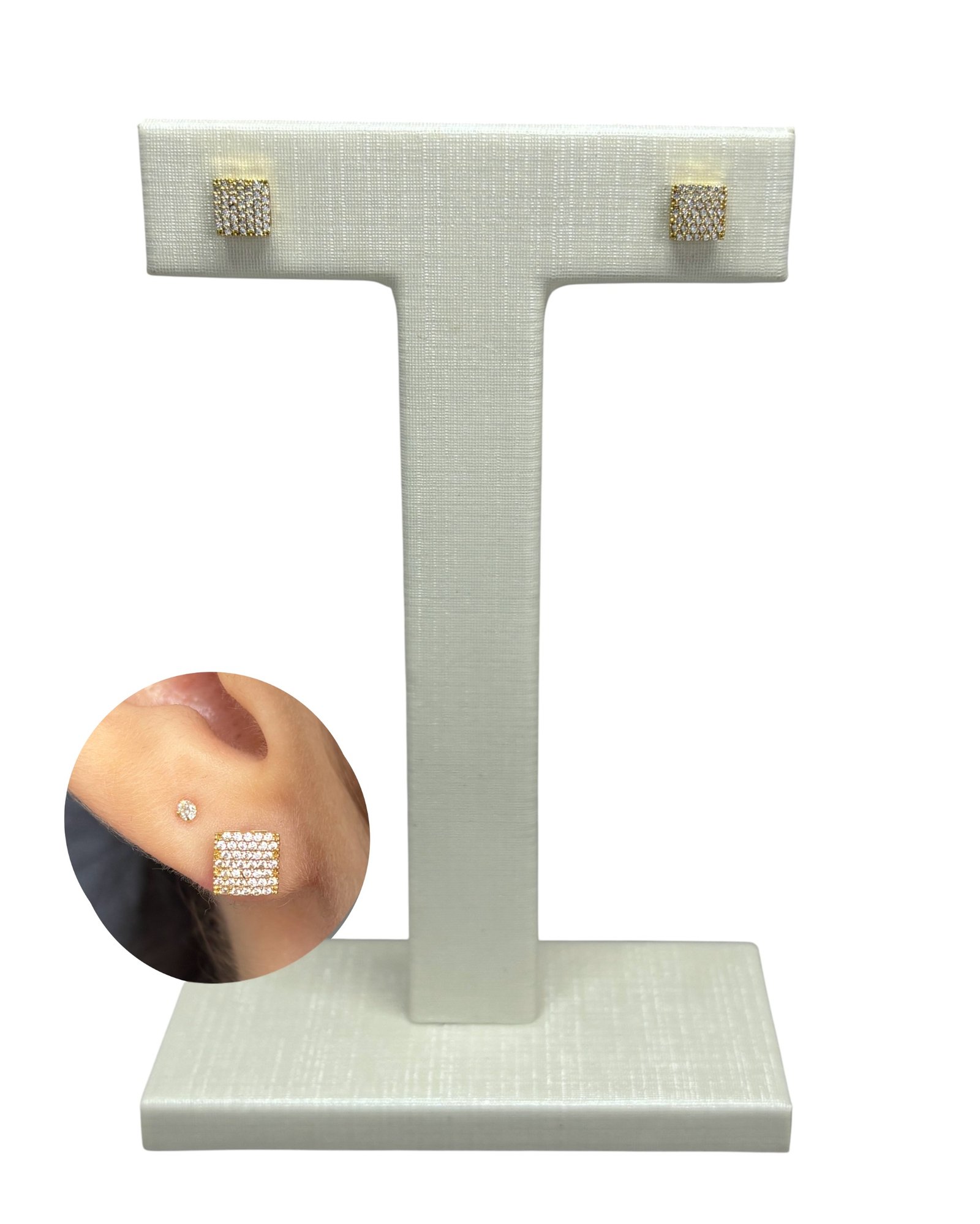 Brinco chuveiro quadrado P em ouro 18k com zircônias.