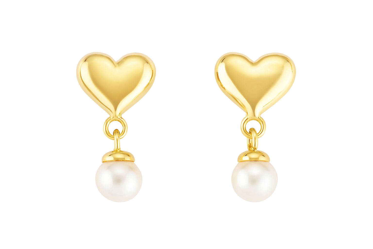 Brinco coração em ouro 18k com pérola.