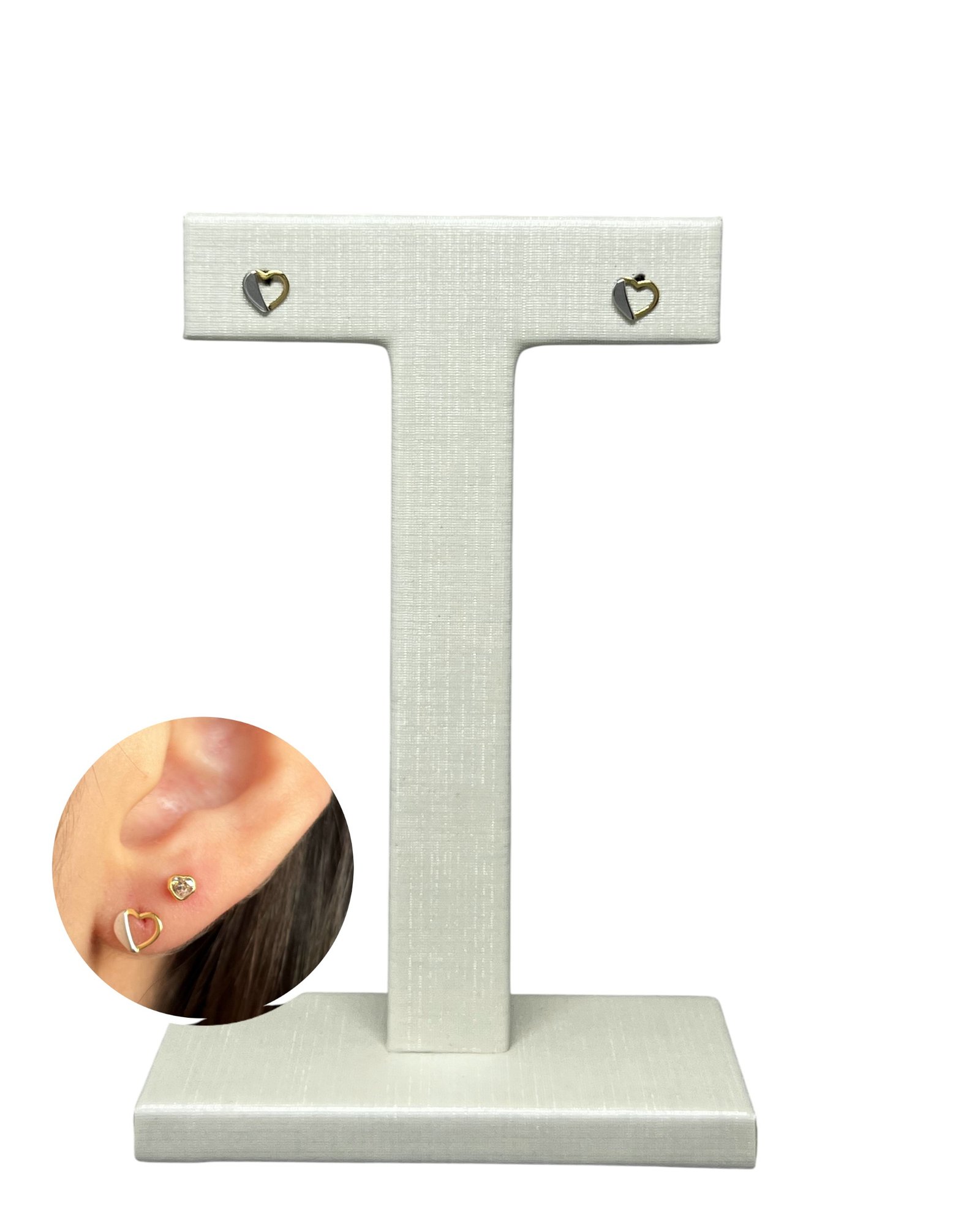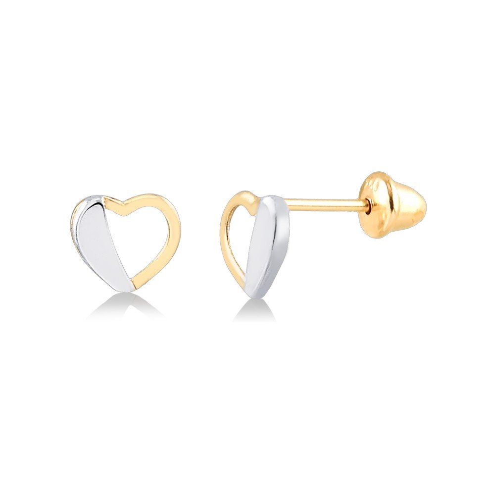 Brinco coração vazado em ouro 18k com detalhe em ródio.