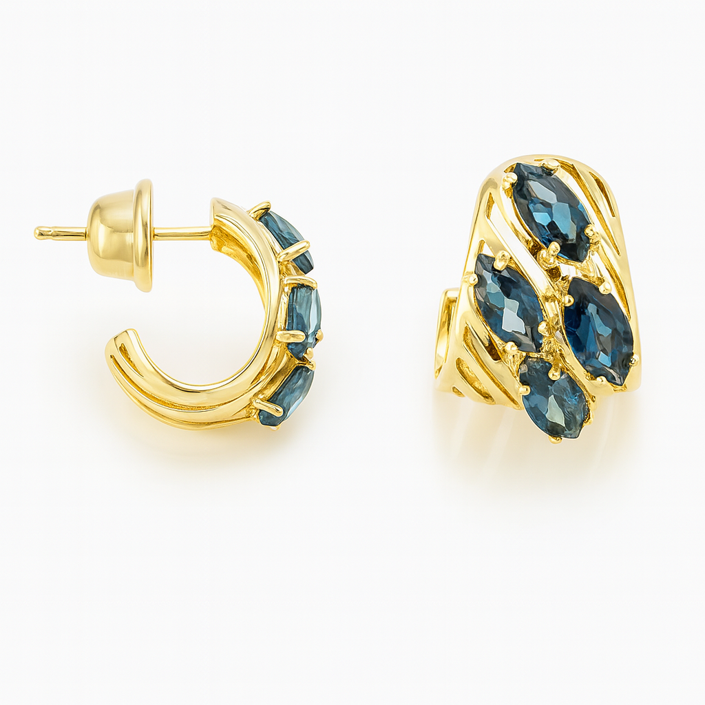 Brinco fios em ouro 18k com 8 pedras naturais topázios.