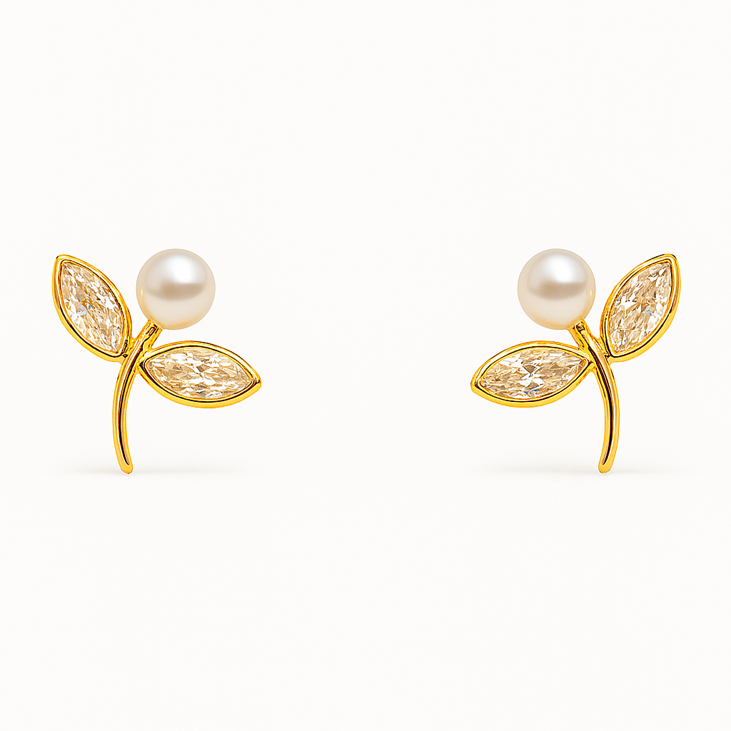 Brinco Flor Pérola em ouro 18k com zircônia.