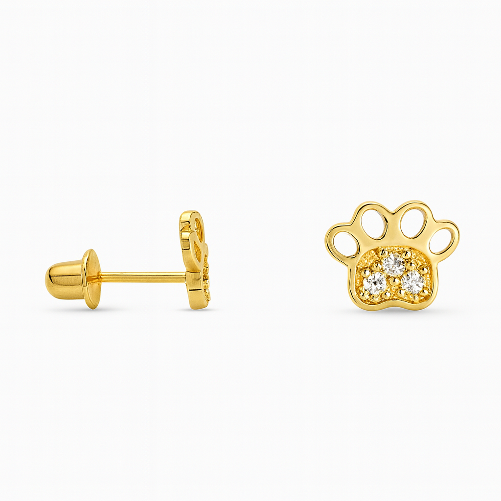 Brinco pata em ouro 18k com zircônias.