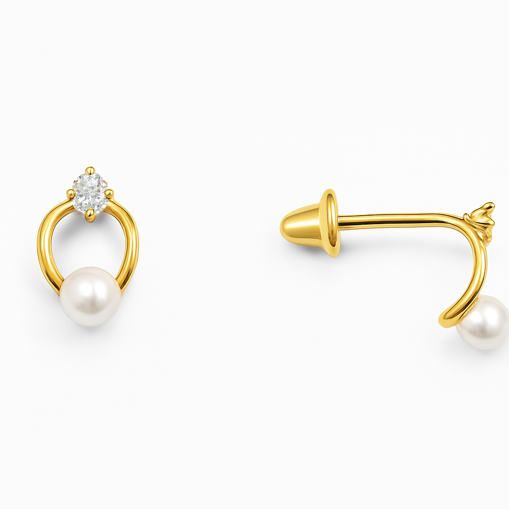 Brinco em ouro 18k com 1 Pérola e Brilhante.