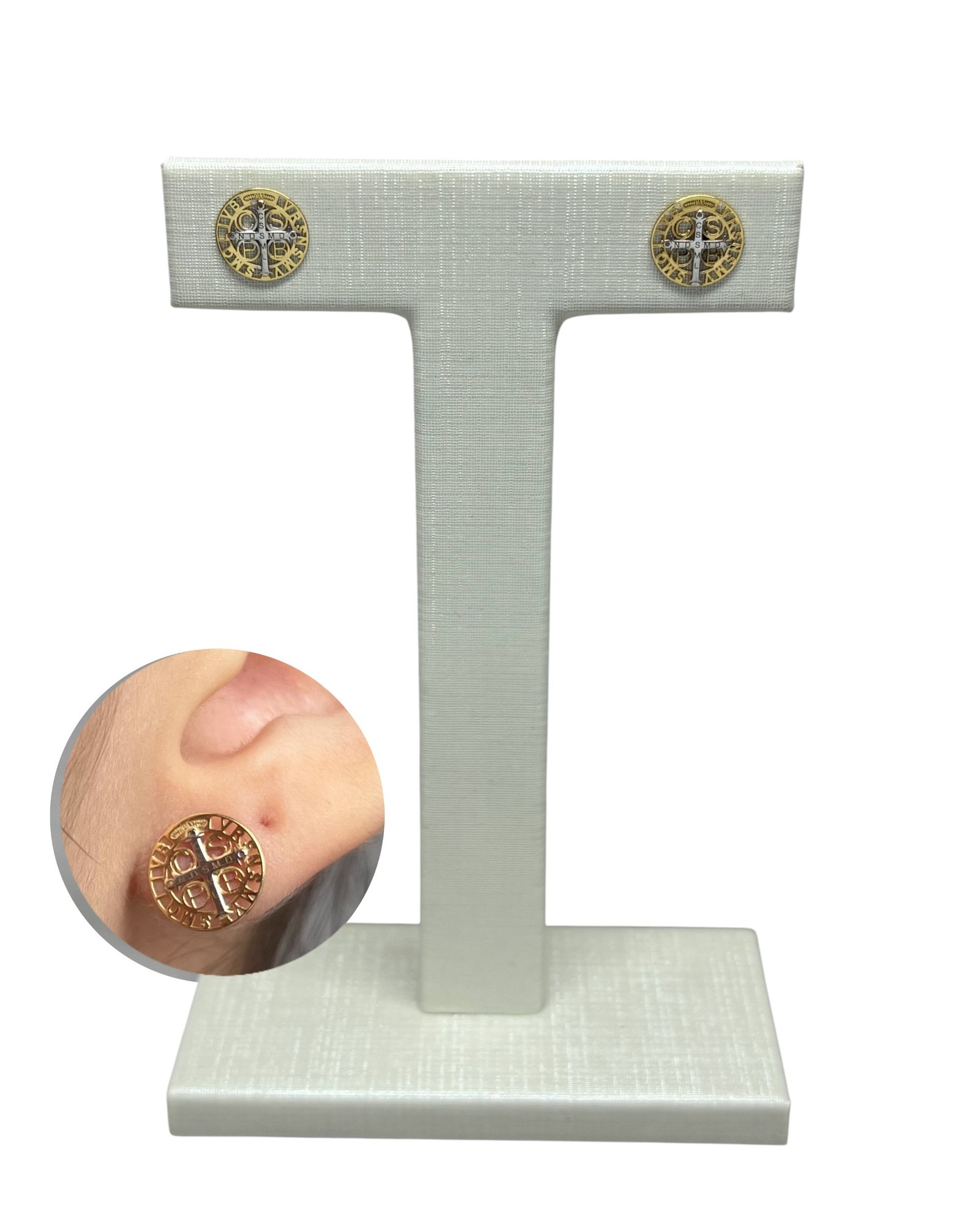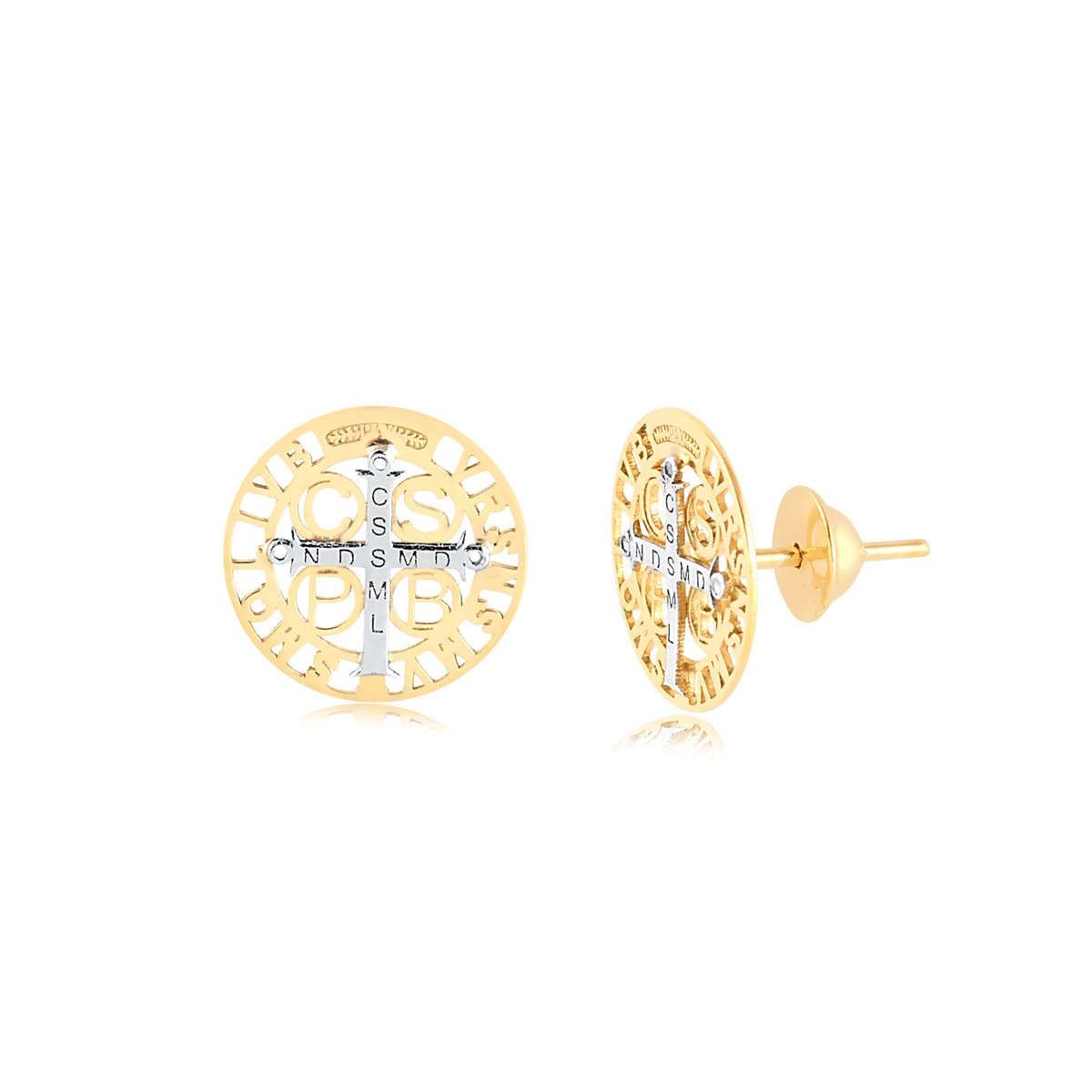 Brinco São Bento em ouro amarelo 18k e ouro branco.