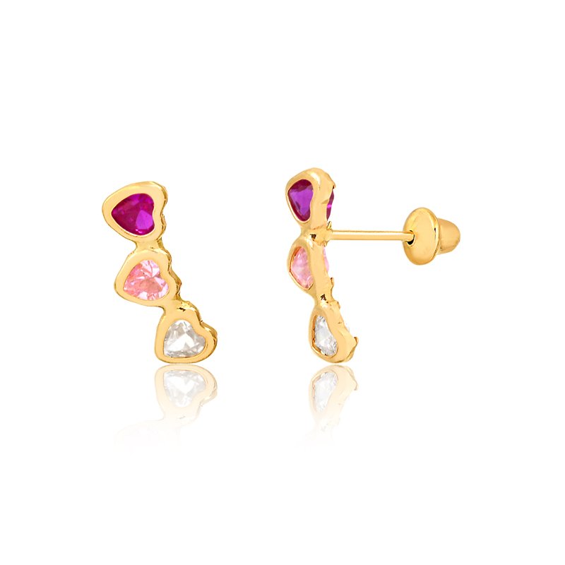 Brinco em ouro 18k com trio de corações de zircônias.