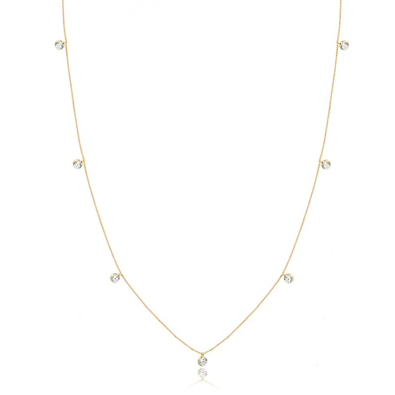Gargantilha corrente veneziana de 43cm em ouro 18k com pedras redondas em zircônia.