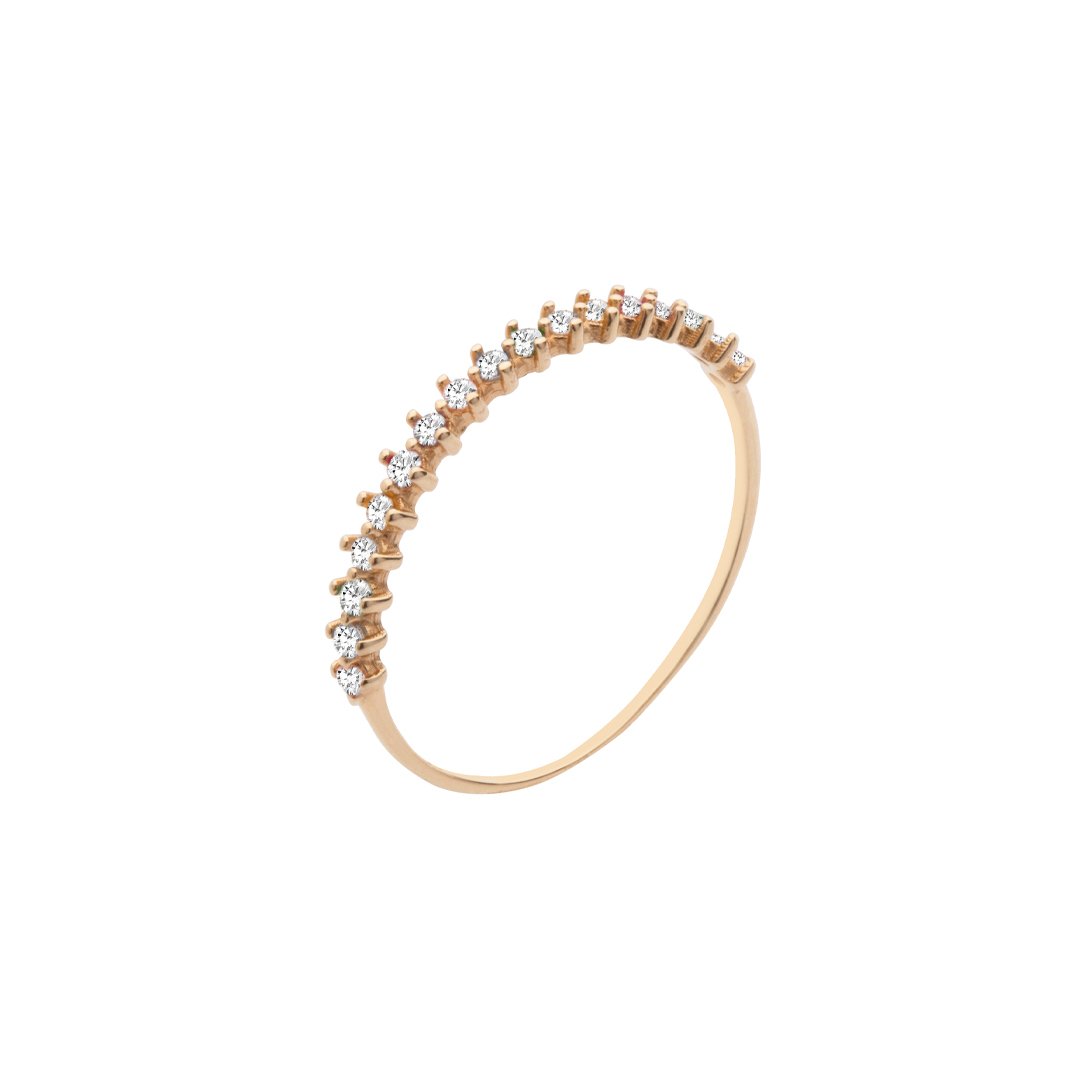 Meia aliança em ouro 18k com 17 zircônias.