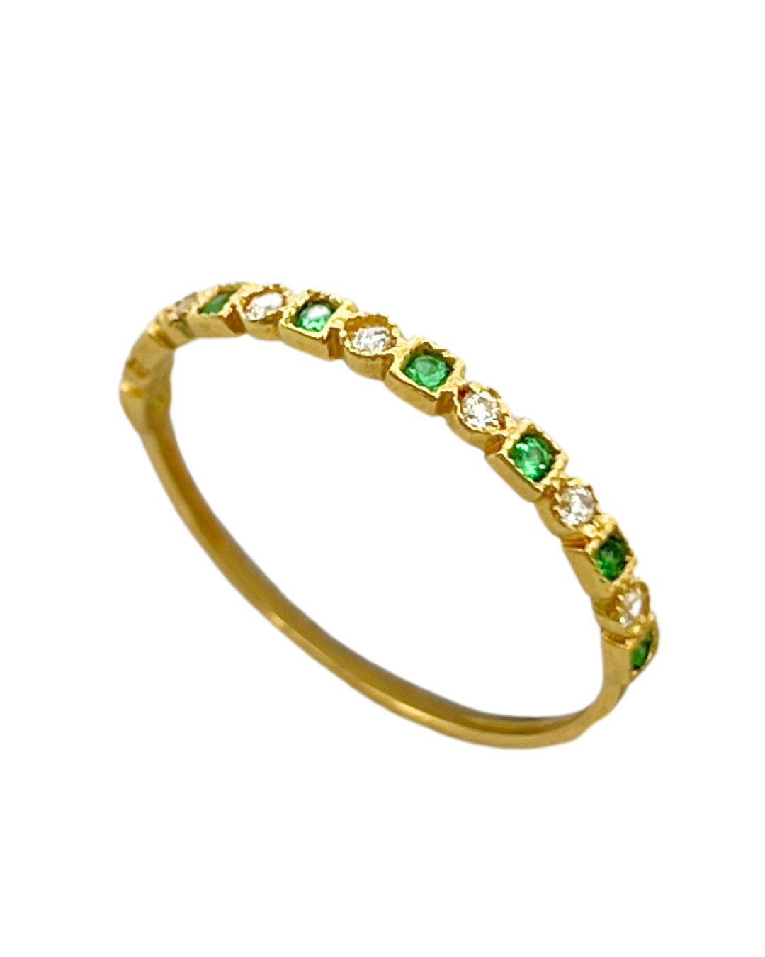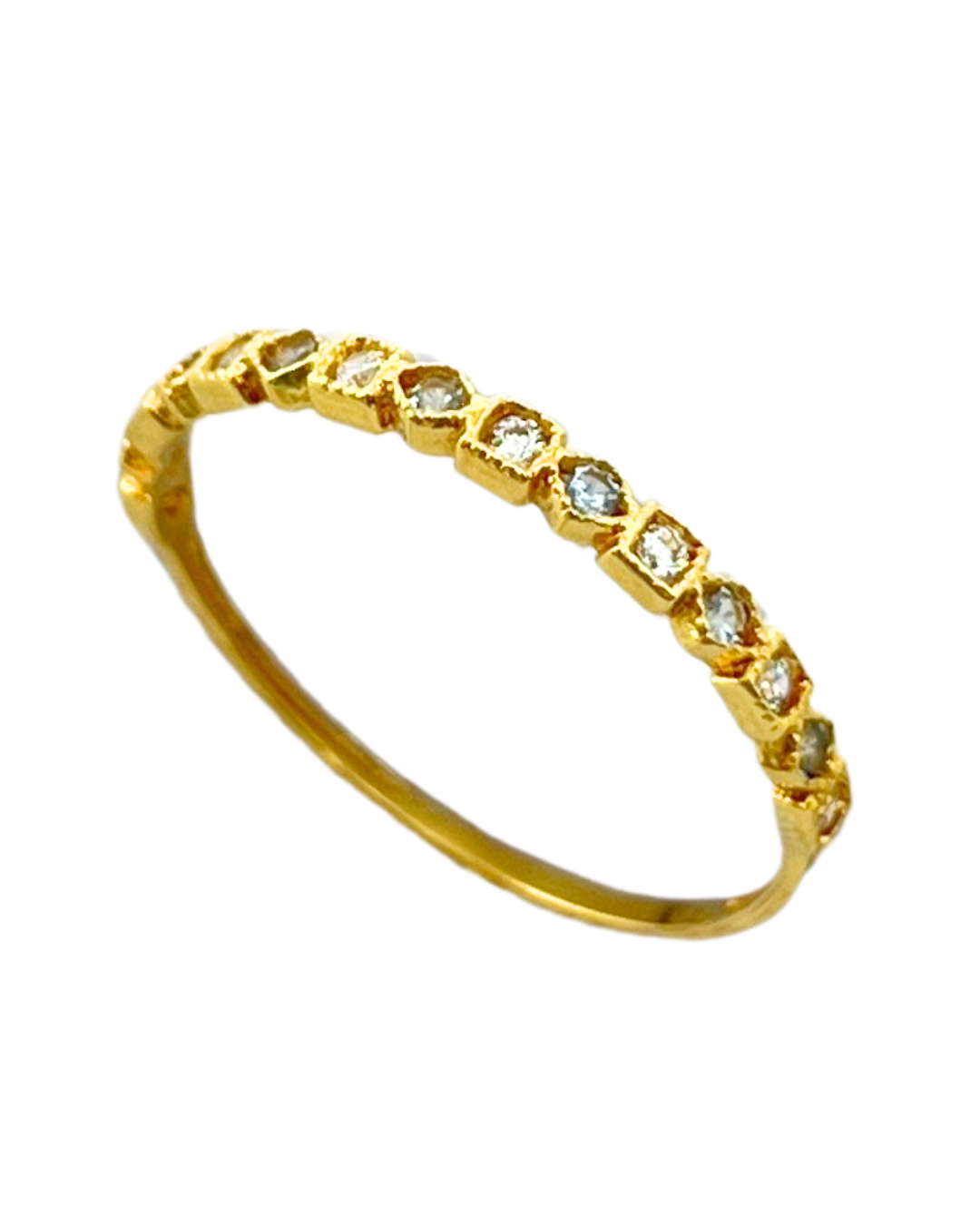 Meia aliança em ouro 18k quadrada e losango com zircônias.
