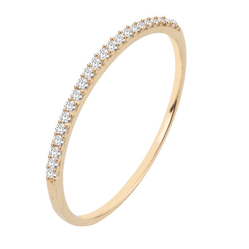 Meia aliança em ouro 18k com 16 zircônias.