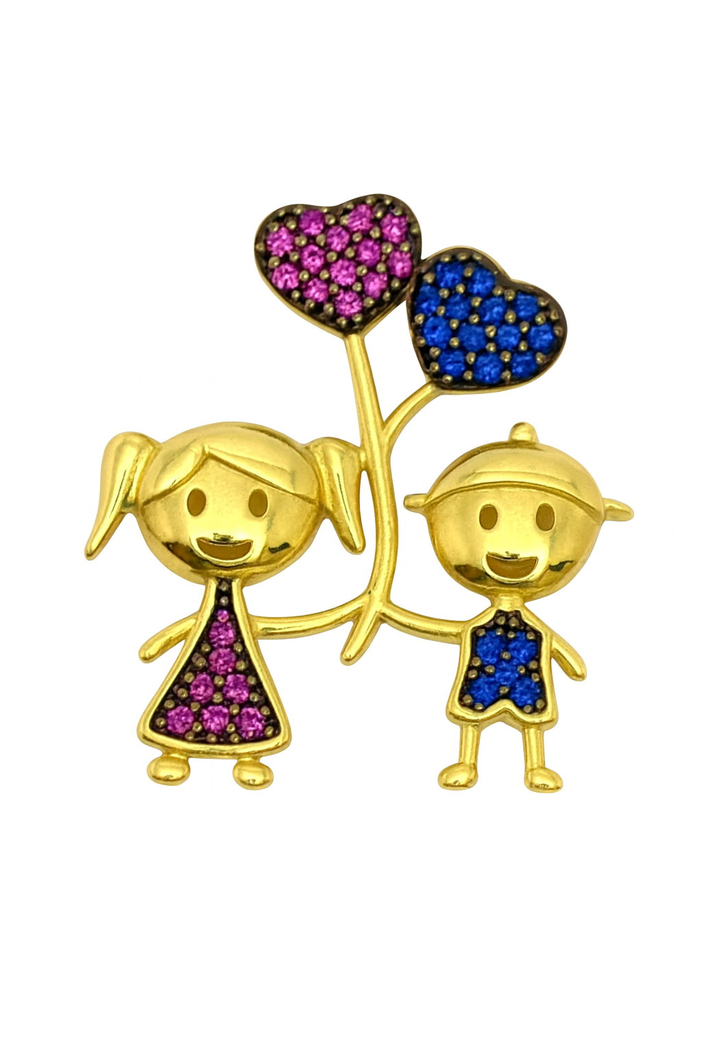 Pingente casal de crianças com balões de coração com zircônias.