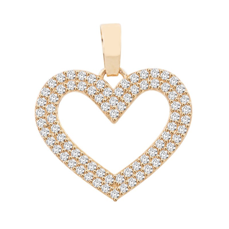 Pingente coração vazado G em ouro 18k com duas fileiras de zircônias.