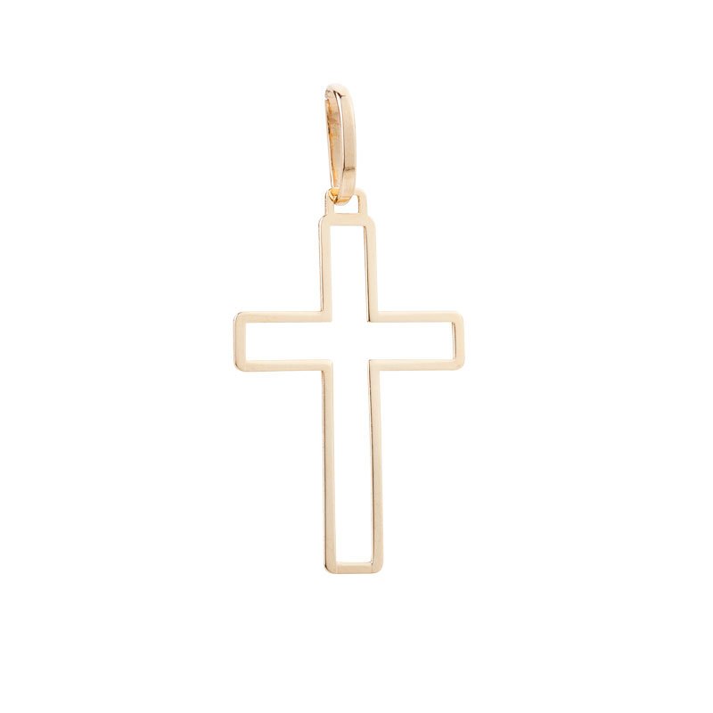 Pingente cruz vazada M em ouro 18k.