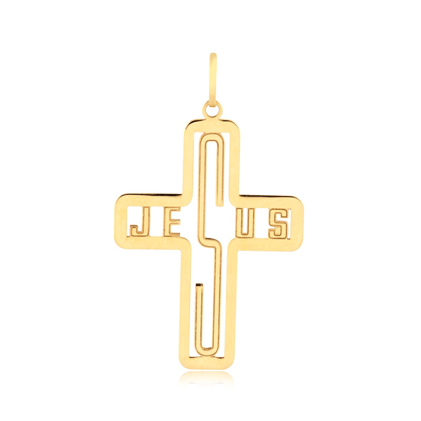 Pingente cruz Jesus vazado em ouro 18k.