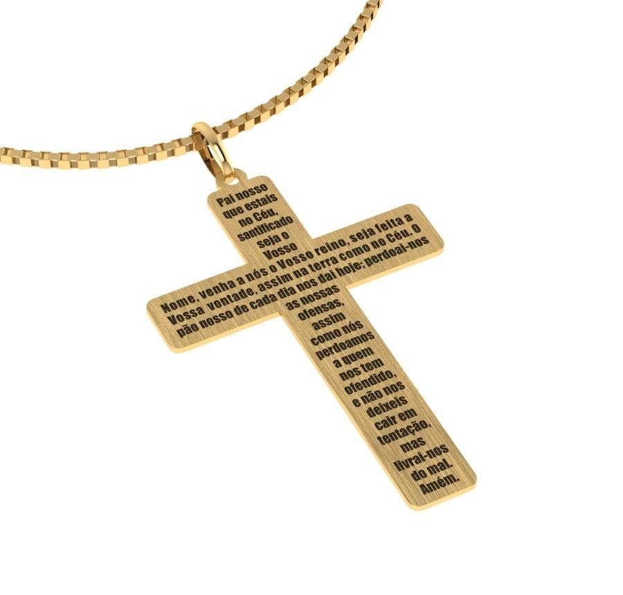 Pingente cruz com Pai Nosso em ouro 18k.