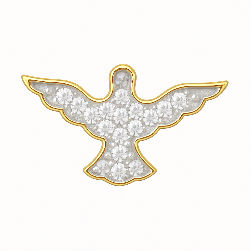 Pingente Espírito Santo com 15 brilhantes em ouro 18k.