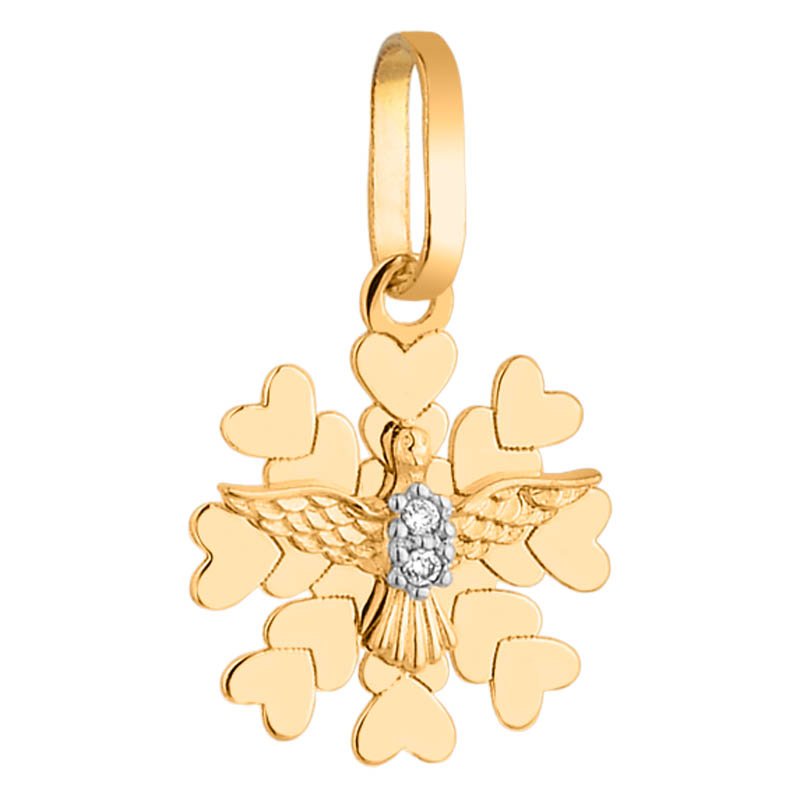 Pingente Espírito Santo e corações em ouro 18k com 2 brilhantes de 0.85mm.