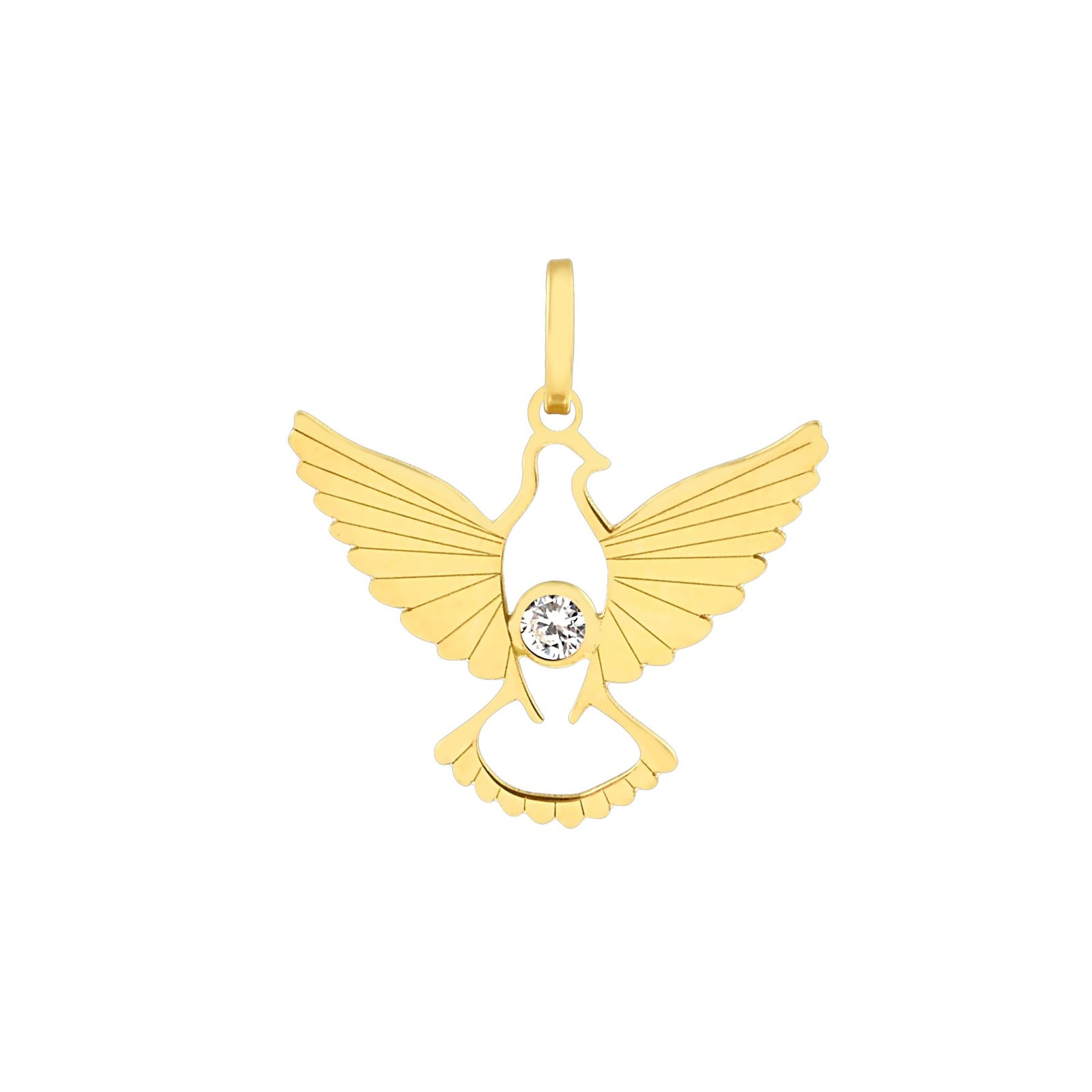 Pingente Espírito Santo em ouro 18k com zircônia.