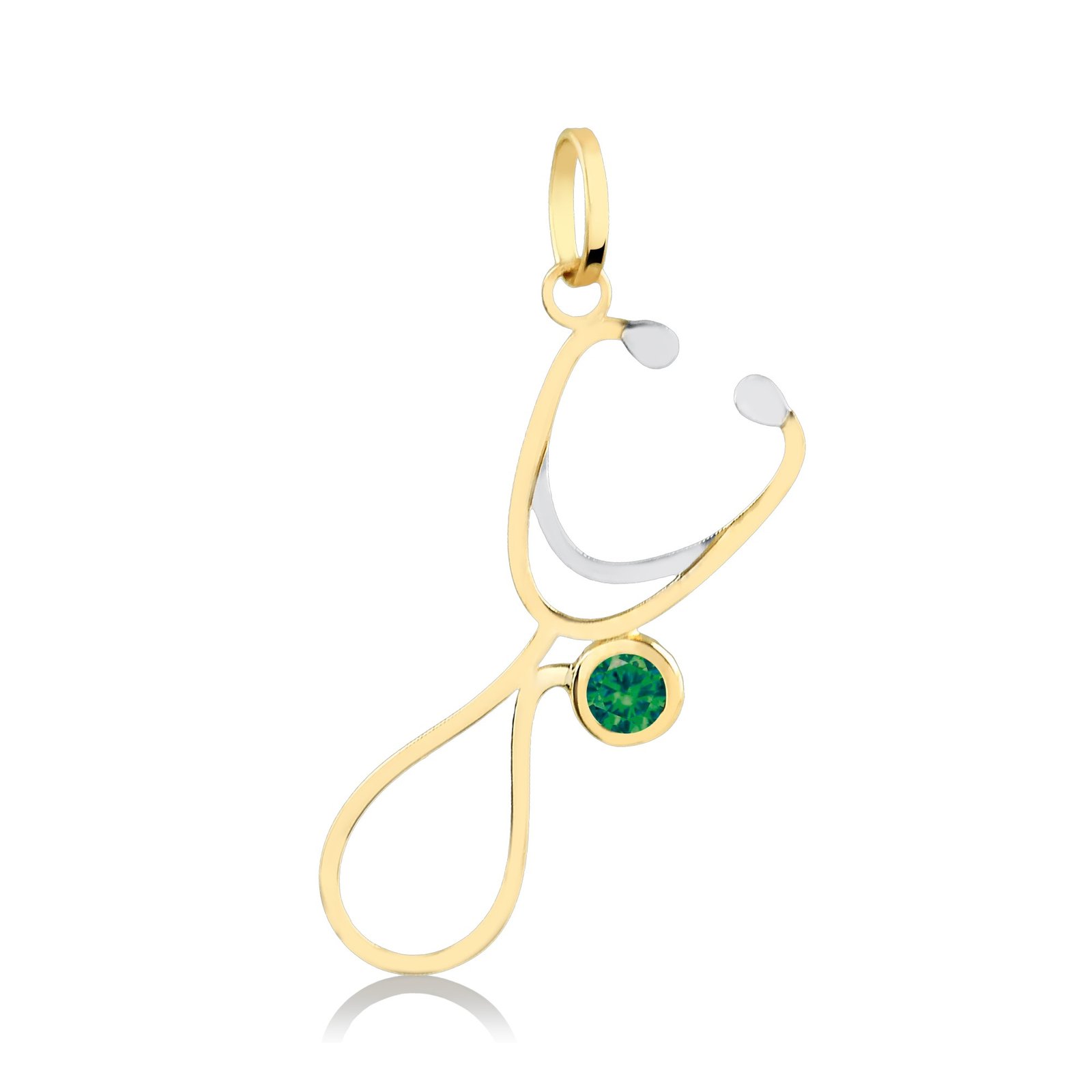 Pingente estetoscópio bicolor em ouro amarelo e ouro branco 10k com zircônia.