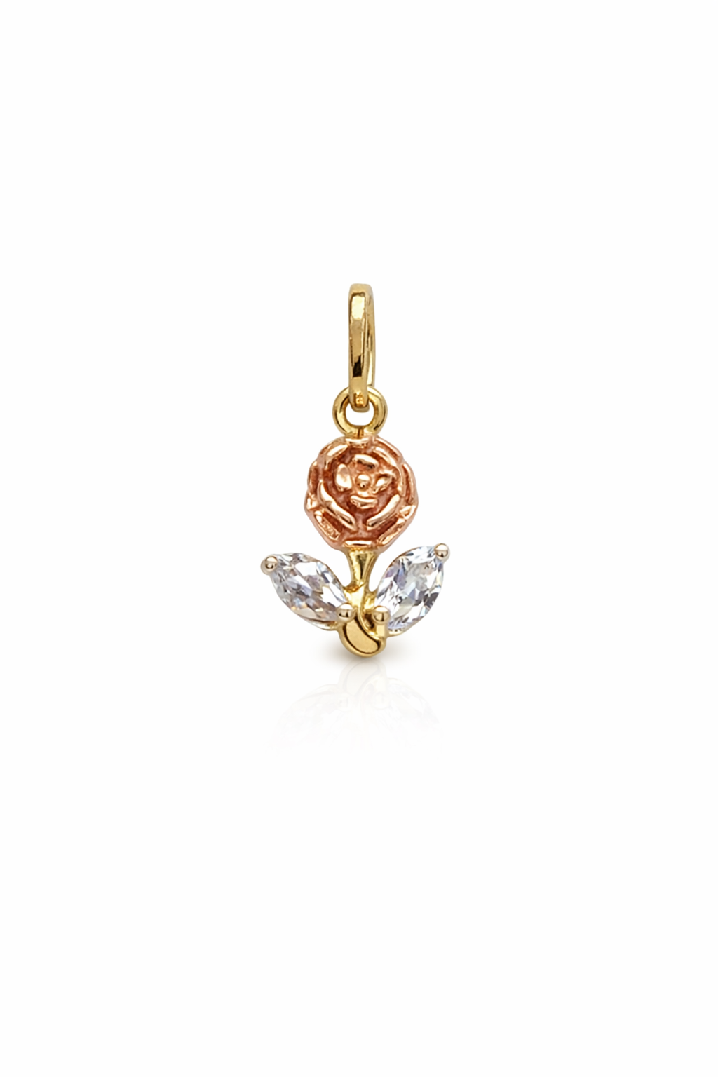 Pingente flor tricolor em ouro 18k.