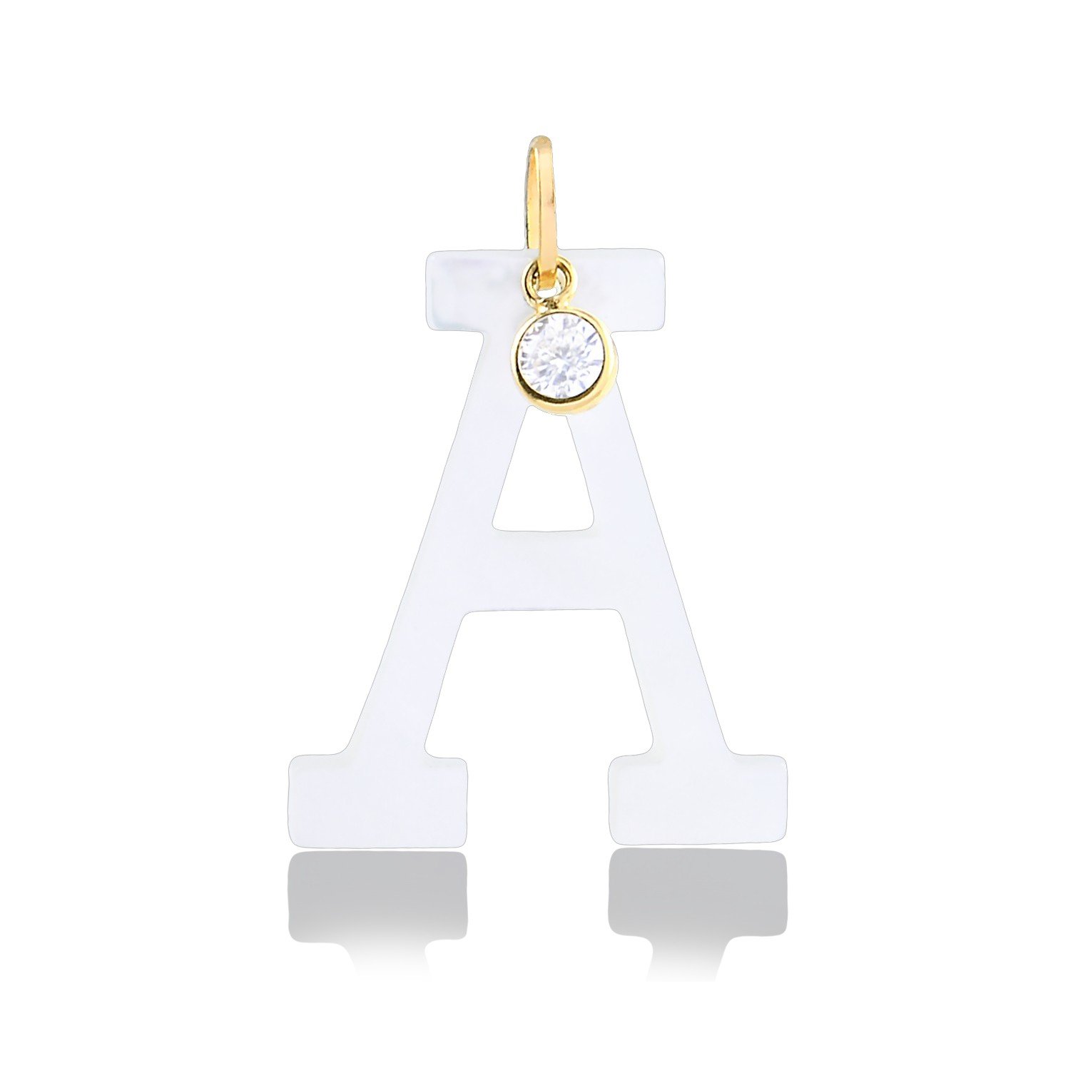 Pingente letra A de 25mm em madrepérola com passador em ouro 18k e zircônia.